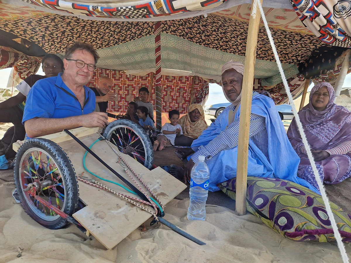 Auch diesmal trafen sie auf freundliche, hilfsbereite Menschen. Sie wurden in ein Zelt eingeladen. Auch hat der Hausherr bei der Reparatur der Reifen geholfen.