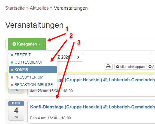 So können Sie sich nun auf einen Blick alle Termine einer Kategorie anzeigen lassen.