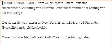 Christi Himmelfahrt – Vom Glück auf Erden